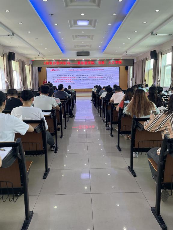 本网讯(通讯员 李洋洋)5月26日下午,太阳集团官网8722与马院、人文学院在1号楼6楼报告厅联合开展5月份党员集中轮训活动。此次培训的主要内容是深入学习贯彻习近平总书记有关高等教育的重要论述,思政课部汤玉红教授受邀为两个学院100余名无课师生党员作辅导报告。活动由太阳集团官网8722分党委书记张秋芳主持。