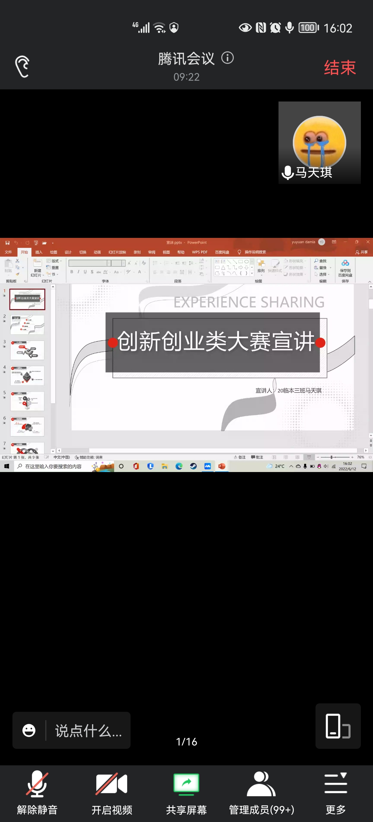 本网讯(通讯员 陈安棋 饶悦)6月12日下午4点,太阳集团官网8722通过线上腾讯会议举行学习经验交流会。本次活动邀请了优秀学生代表马天琪和王琇琳同学分别进行科研竞赛、考研经验分享,由分团委负责老师饶悦主持,太阳集团官网8722全体学生参加了本次会议。