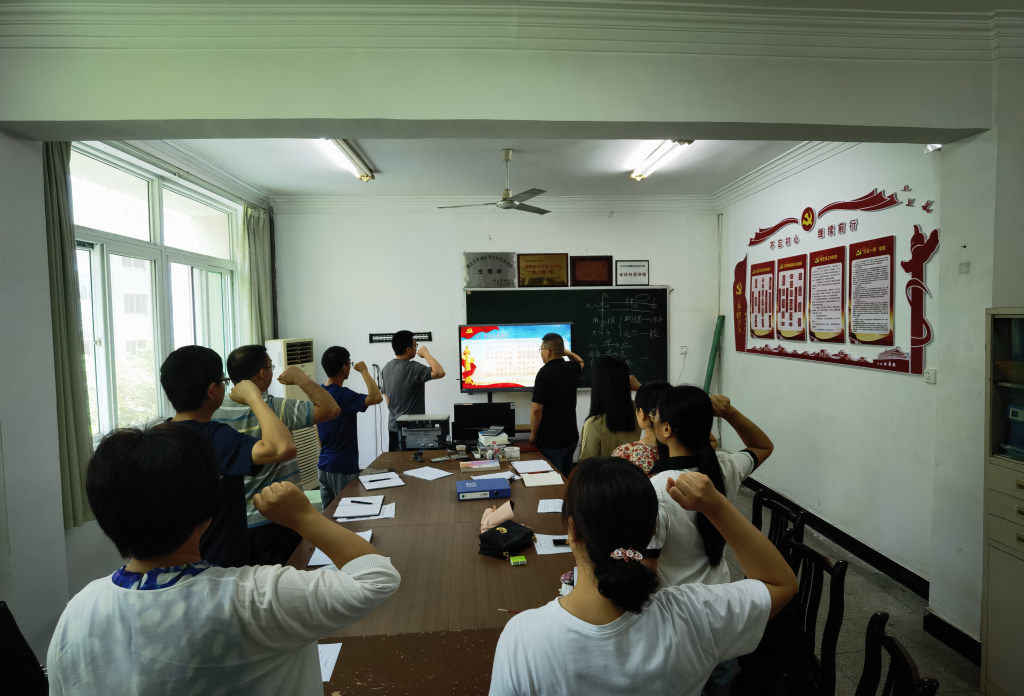 在交纳党费、奏唱国歌、重温入党誓词之后,大家共同学习了习近平总书记在湖北武汉考察时的重要讲话精神;习近平总书记在庆祝香港回归祖国25周年大会上的重要讲话精神;《中共中央关于党的百年奋斗重大成就和历史经验的决议》“中国共产党百年奋斗的历史意义”部分内容;中国共产党湖北省第十二次代表大会精神;全市传达学习贯彻省第十二次党代会精神暨党员干部下基层察民情解民忧暖民心实践活动推进会精神;习近平总书记在中共中央政治局第四十次集体学习时的重要讲话精神。在整个学习过程中,各位党员同志认真聆听,仔细记录,学习氛围浓厚,学习效果良好。