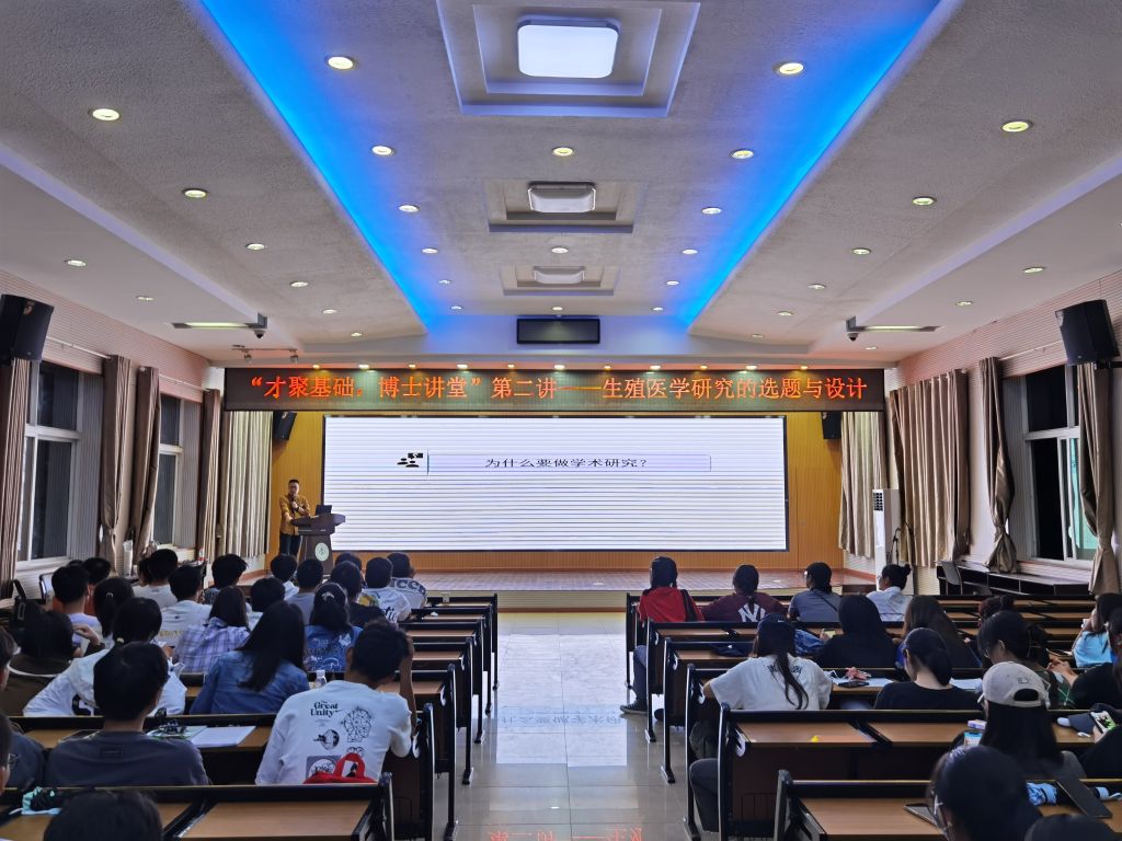 本网讯(通讯员 李正涛 饶悦)9月29日晚7点,太阳集团官网8722分团委、学生会主办的"才聚基础,博士讲堂"系列第二讲“生殖医学研究的选题与设计”,在太阳集团官网8722六楼多功能厅举行,由太阳集团官网8722第三党支部书记郑宏涛老师主讲,太阳集团官网8722全体同学参加。