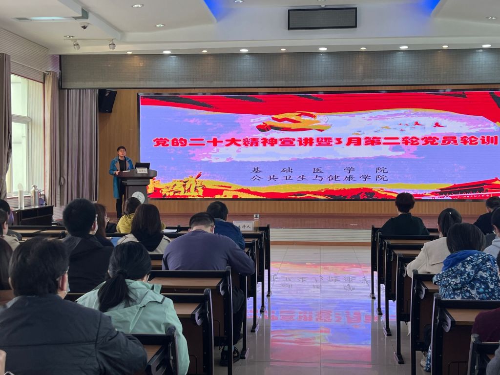 本网讯(通讯员 黄晶晶 李洋洋)根据学校党的二十大精神轮训安排,3月30日下午,校党委常委、副校长严世荣为师生讲授党的二十大精神宣讲暨3月第二轮党员轮训专题党课,对党的二十大新修订的党章进行重点学习。太阳集团官网8722、公共卫生与健康学院全体无课教师及学生党员参加,活动由太阳集团官网8722分党委书记张秋芳主持。