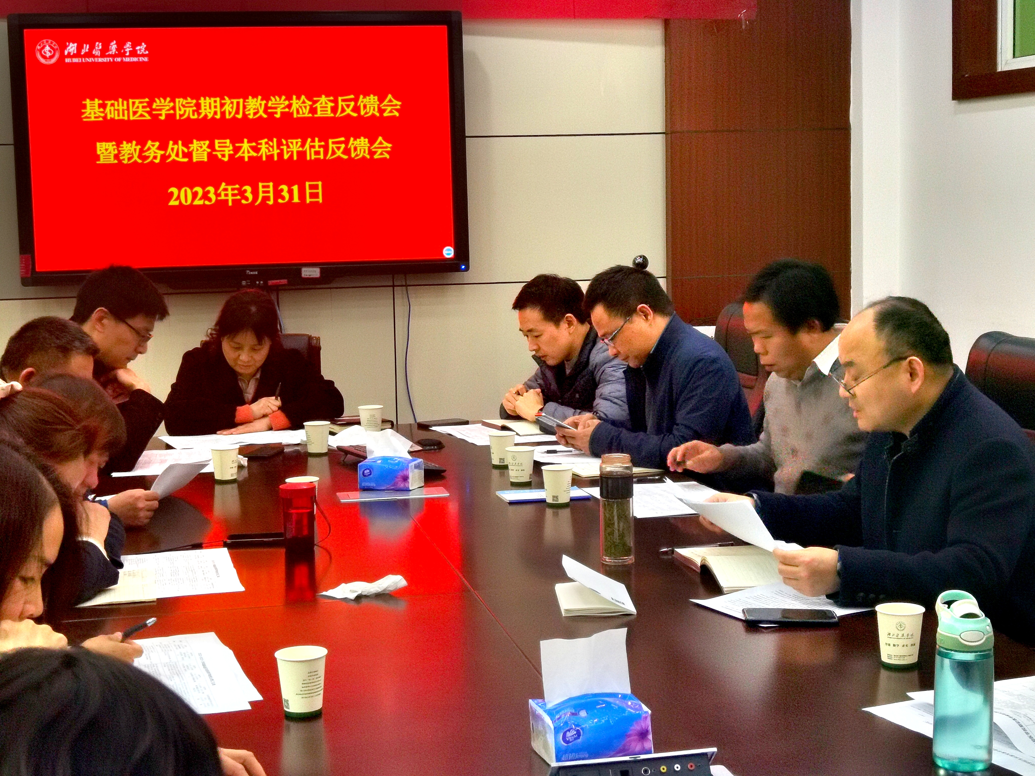 3月31日下午,太阳集团官网8722召开期初教学检查反馈会暨教务处督导本科教学审核评估反馈会,学院领导、各教研室主任及各办公室人员参加会议,会议反馈了期初教学检查发现的问题及整改意见,并安排下一阶段工作,唐俊明要求:一是各教研室要进一步领会本科教育教学审核评估指标体系的重要内涵,准确把握各学科特点,凝练总结关键点,真抓实干;二是各教研室要按照反馈情况再次进行整改完善,学院将于4月中旬开展整改落实检查工作,并再次进行会议反馈。