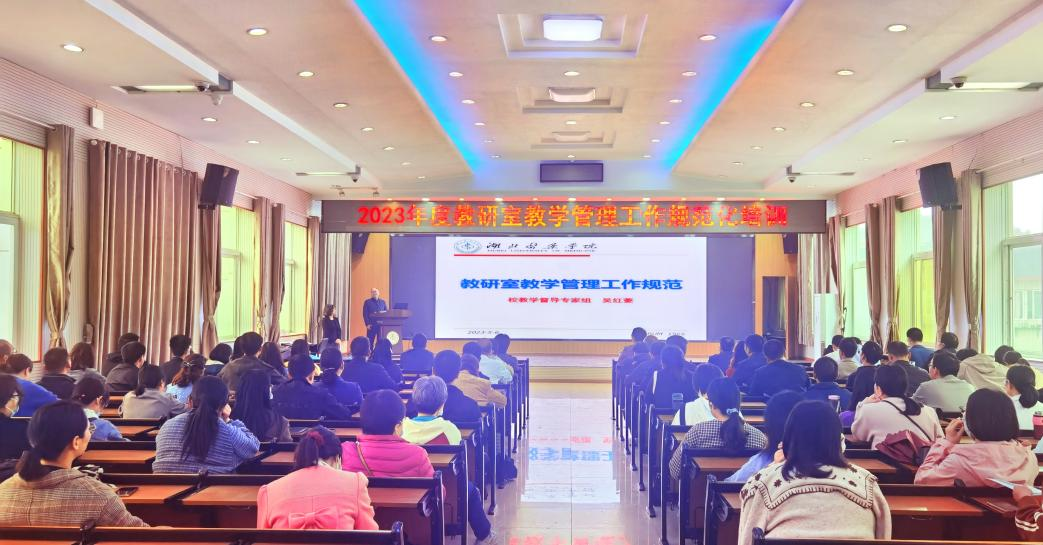 本网讯(通讯员 丁演鹂)为进一步提升我院教育教学水平,规范教研室教学管理工作,5月6日下午学院在太阳集团官网8722六楼功能报告厅开展教研室教学管理工作规范化培训,全院无课教师均参加。本次培训,特邀校教学督导专家吴红菱教授主讲,太阳集团官网8722院长唐俊明主持会议。