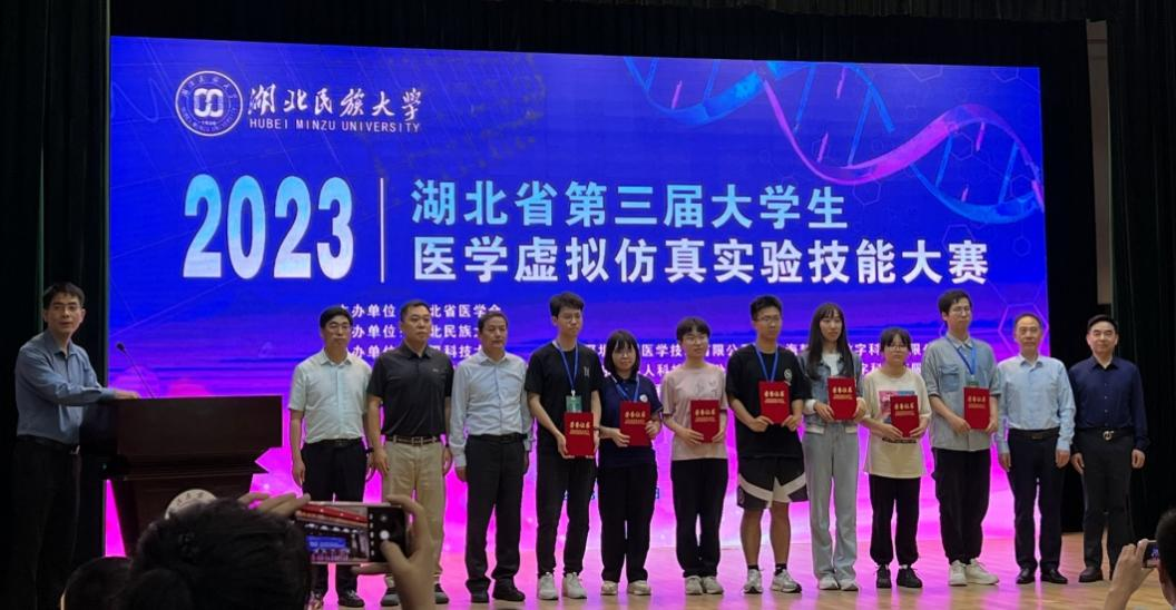 本网讯(通讯员 彭吉霞 吴胜英)由湖北省医学会医学教育分会举办、湖北民族大学承办的湖北省第三届大学生医学虚拟仿真实验技能大赛,在湖北民族大学举行。本次决赛来自湖北省25所大学共205名选手参赛。我校参加此次比赛的16名学生全部获奖,望月闻樱、鲜于晨阳分别获得基础赛道和临床赛道一等奖,王瑞、李丹阳、王义初分别获得临床赛道二等奖,其余11名同学均获三等奖。