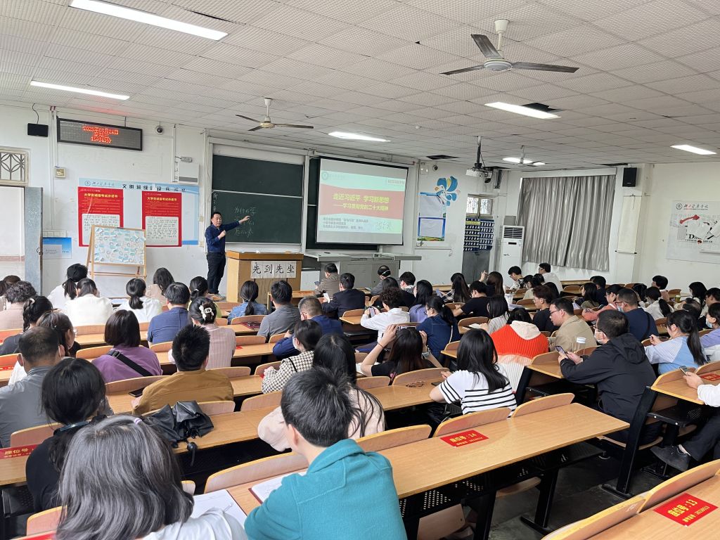 陈全新以《走近习近平学习新思想》为题,从为什么学、学什么、怎么学三个方面为切入点,指出学习习近平新时代中国特色社会主义思想,坚持用党的创新理论武装头脑、指导实践、推动工作,以习近平五级书记的成长之路为例,激励新时代青年教师要以习近平总书记为榜样,继承和发扬吃苦耐劳、艰苦奋斗的精神,做有理想、敢担当、能吃苦、肯奋斗的新时代好教师,为党和人民培育英才。