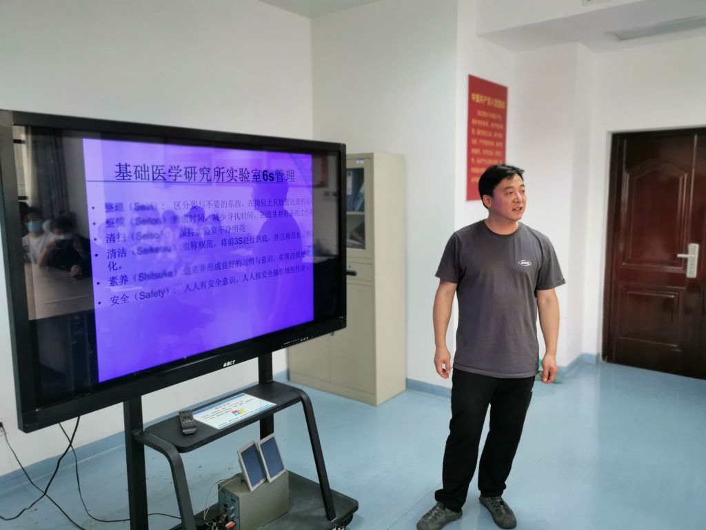 随后,基础医学研究所科辅教师罗超做实验室安全教育培训专题报告,他从实验室安全事故警示教育案例、实验室安全注意事项和基础医学研究所实验室6S管理等方面进行了说明与讲解。专题报告后,科辅教师对参会学生再次进行了重点安全仪器设备使用的现场指导和培训。