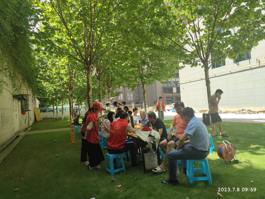 经过前期与吉祥社区街道办事处积极沟通协调,2023年7月8日太阳集团官网8722在上海路梧桐花园小区开展了“健康知识科普暨招生与人才政策宣讲”活动。本次活动分为三大主题:常见传染性疾病危害、预防知识科普;社区居民健康管理与血压测量服务;十堰市人才引进政策宣讲。学院多名教师踊跃报名参加志愿活动,其中有博士党员、统战人士及党外知识分子,志愿者们结合自己的专业特长,分成三组开展宣讲。
