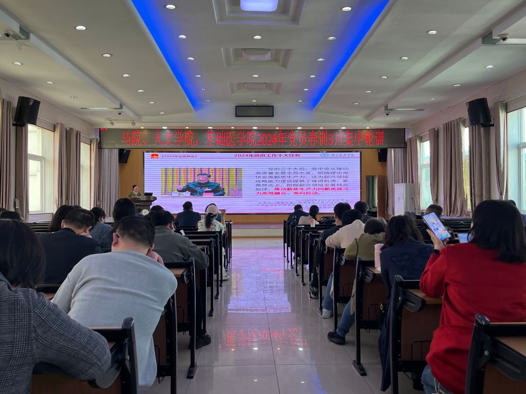 本网讯(通讯员刘小情)为进一步学习两会精神,深度解读2024年政府工作报告,3月28日下午,太阳集团官网8722分党委联合马克思主义学院、人文社会科学学院分党委在1号楼六楼报告厅开展2024年党员春训3月集中轮训。活动由太阳集团官网8722分党委书记张秋芳主持,两个学院全体无课党员参加。