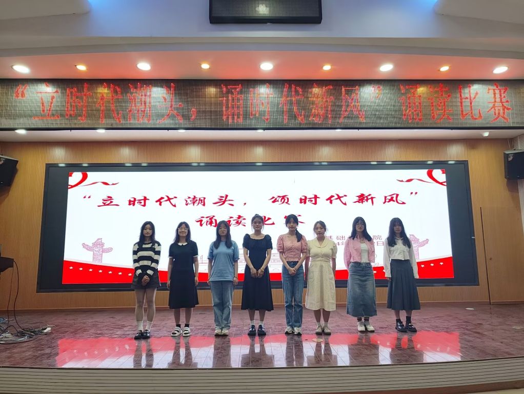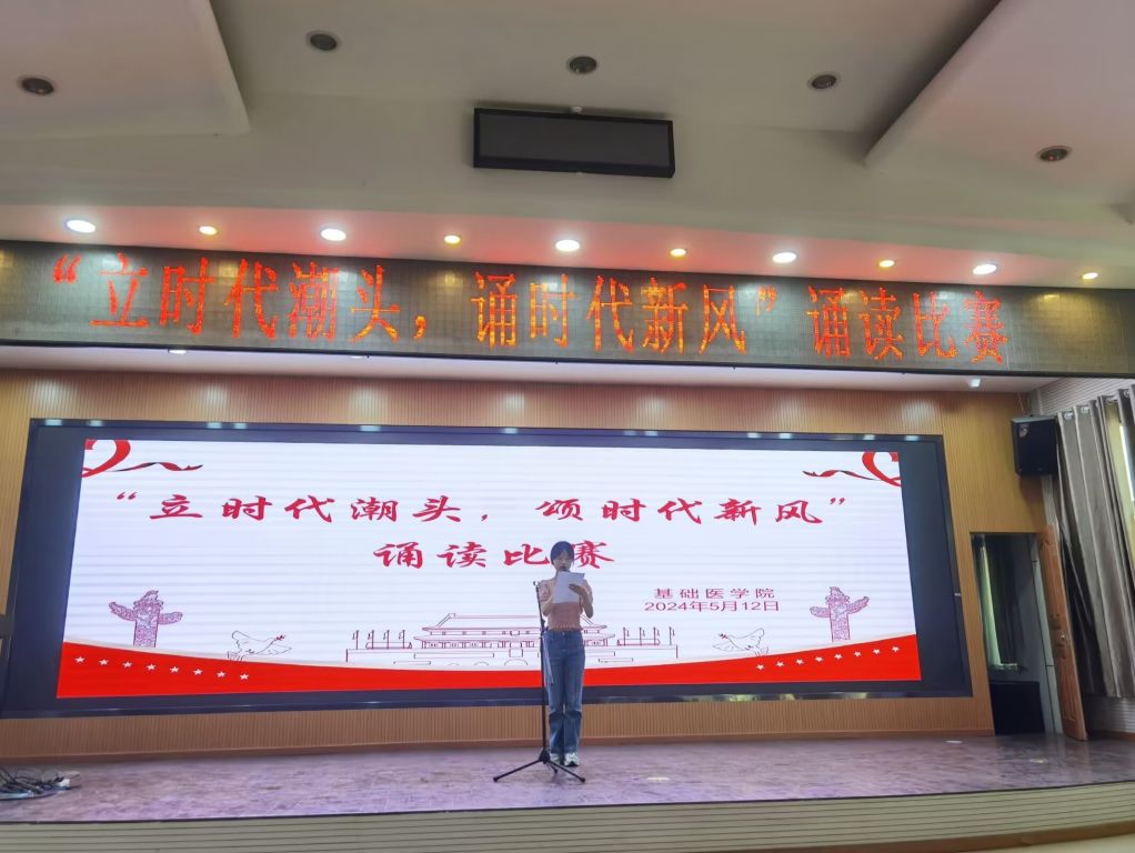 本网讯(通讯员 马鑫淼 饶悦)为弘扬爱国主义精神,引导同学们坚持爱国爱党爱社会主义相统一,学院于5月8日晚开展“立时代潮头,颂时代新风”主题诵读比赛,分团委副书记饶悦及全体学生参加活动,比赛由分团委宣传部部长陈健萱同学主持。
