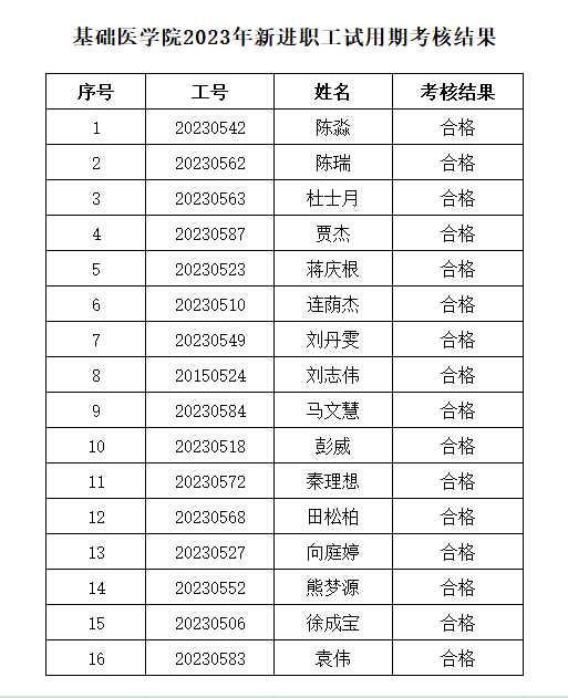 根据人事处《关于对2023年新进职工试用期考核的通知》的通知,太阳集团官网8722对陈淼等16名2023年新职工进行试用期履职情况考核,现将考核结果公示如下:
