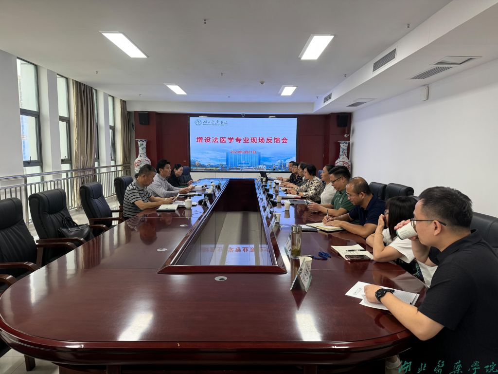 本网讯 9月21日,由湖北省卫健委科教处处长张有元、华中科技大学同济医学院法医系副主任刘茜和武汉大学中南医院司法鉴定所主任鲁植艳组成的法医学专业设置现场评估专家组,对我校申报设置法医学专业进行现场评估。党委书记郑丹凤,党委常委、统战部部长谭艳,教务处和基础医学专业负责人参加评估汇报会。评估会由谭艳主持。