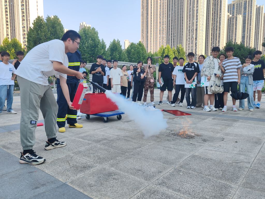 马越老师通过寓教于乐的生动语言向师生们阐述了火灾的危害性及失火行为带来的法律后果,让大家对火灾的严重性有了更为直观和深刻的理解。他通过案例讲解让大家意识到火灾可能随时发生在我们的身边,或许只是一个小小的烟头、或许是实验室中酒精灯的使用不当都可能酿成大祸......在现场实地演练环节,马越老师进行了现场灭火教学和灭火装备操作讲解,师生们现场积极参与其中,大家也亲身体会到了消防员在奔赴火场时的紧迫感与责任感,他们超乎常人的毅力与惊人的力量,坚韧不拔的向火场冲去,他们是最美逆行者,是最可爱的人。