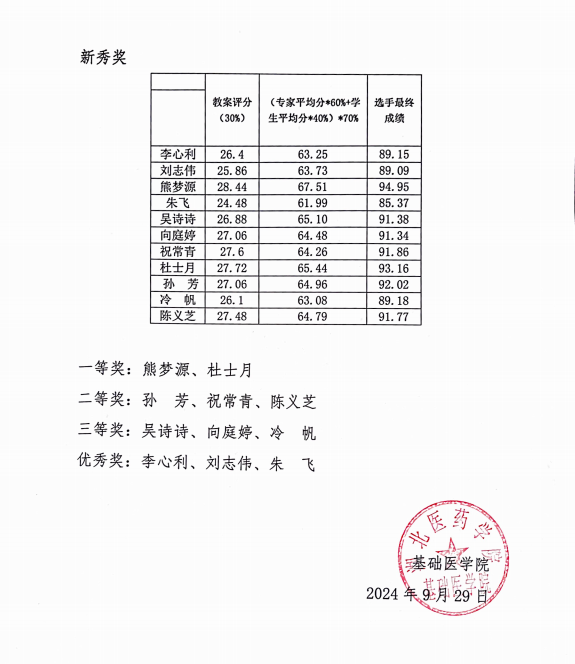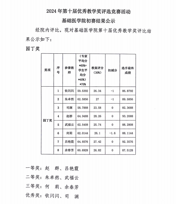 2024年第⼗届优秀教学奖评选竞赛活动太阳集团官网8722初赛结果公示