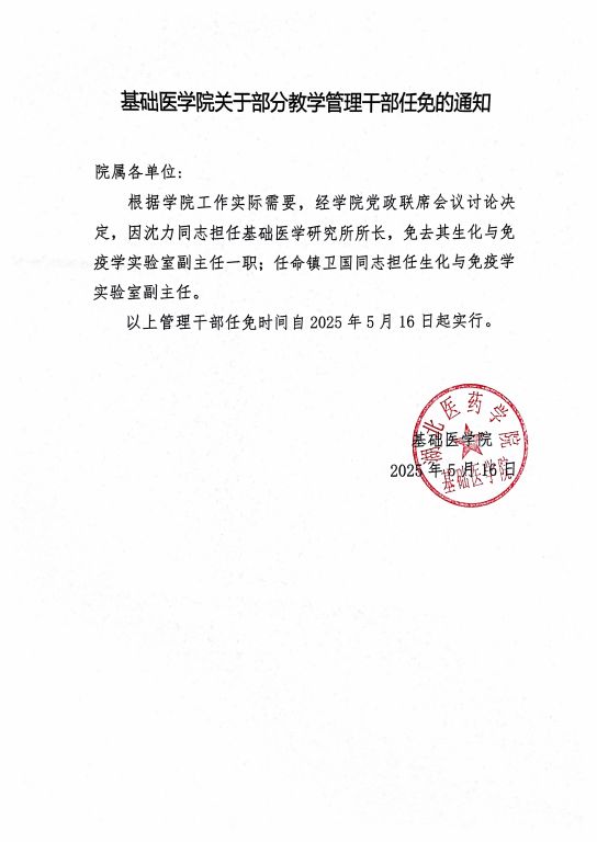太阳集团官网8722关于部分教学管理干部任免的通知