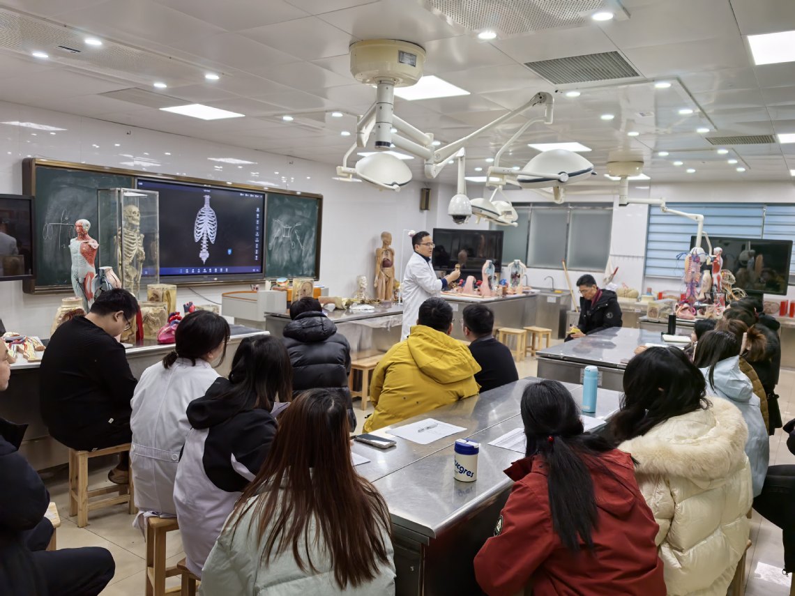 人体解剖学教研室唐杰主任对本次活动进行了总结,他指出,本次试预讲和调研活动意义重大,张秋芳院长提出的指导意见精准到位,为全体教师的成长指明了方向;全体教师要将备课要充分,授课要精炼,重点要突出的要求落到实处:一要持续加强教学基本功训练,确保解剖学教学的专业性和规范性;二要积极探索多元化教学方法,提升学生的学习兴趣和效果;三要建立完善的教学质量监控体系,确保每一堂课都达到高质量标准。