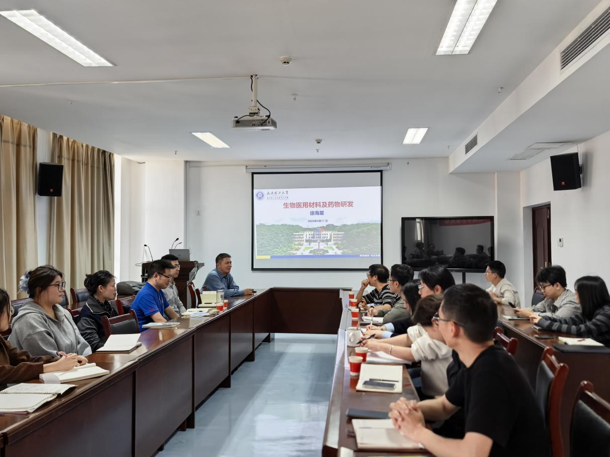 本网讯(通讯员 何志凯) 4月17日下午,我校太阳集团官网8722特邀武汉理工大学徐海星教授在科教楼11楼会议室开展学术讲座与学术交流。校内从事生物医用材料及新型微纳米制剂研发的教师及研究生参加此次活动。学术报告与座谈交流会由太阳集团官网8722院长张秋芳主持。